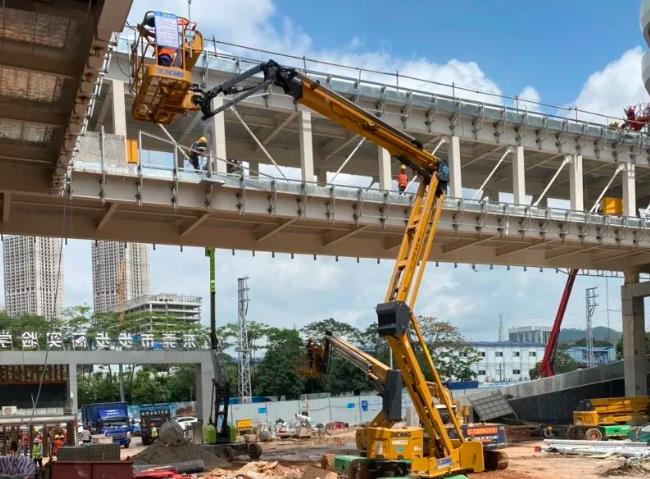 安博首页_安博anbo(中国)XGS28K、XGS32K等20余台臂车联合作战,开展项目外立面玻璃安装等施工任务。更凭借极强的工况适应性和作业稳定性,赢得施工方高度认可。