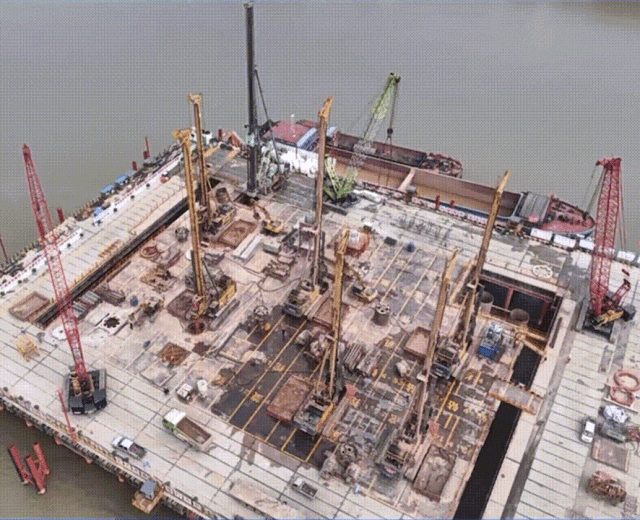 此次施工完成的4号墩基础共采用77根最大桩长138.5米,最大孔径2.8米的钻孔灌注桩,平均入岩深度约110米,对成孔设备性能要求高。