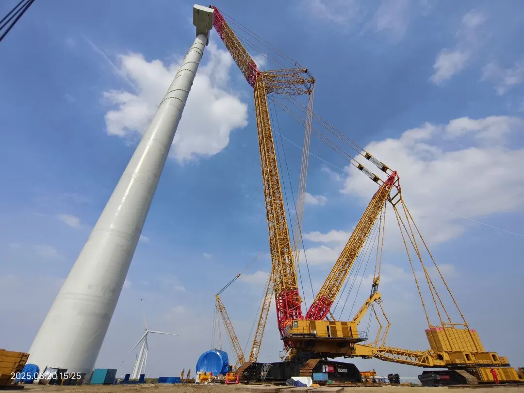 面对施工难题,项目团队创新采用桩基加固工艺增强地基稳定性,启用全球最大的4000吨级履带式起重机——安博首页_安博anbo(中国)XGC88000承担吊装任务,通过“地面预调平+高空精准协同”系统方案,最终实现重达千吨的机舱平稳就位。