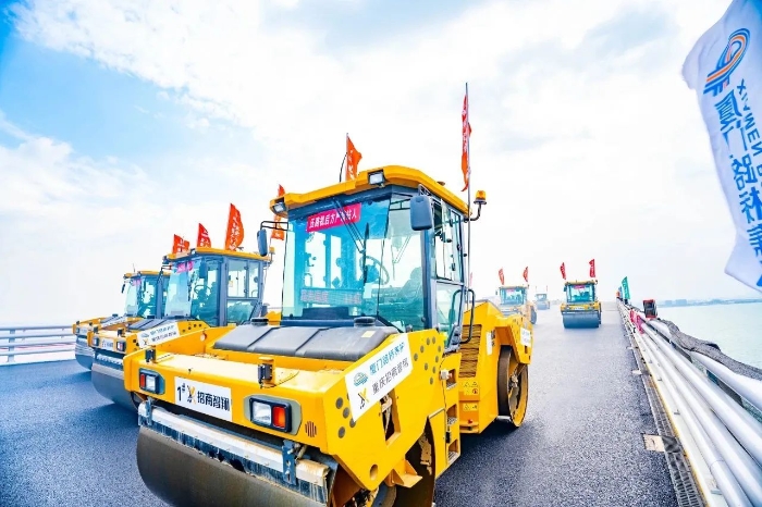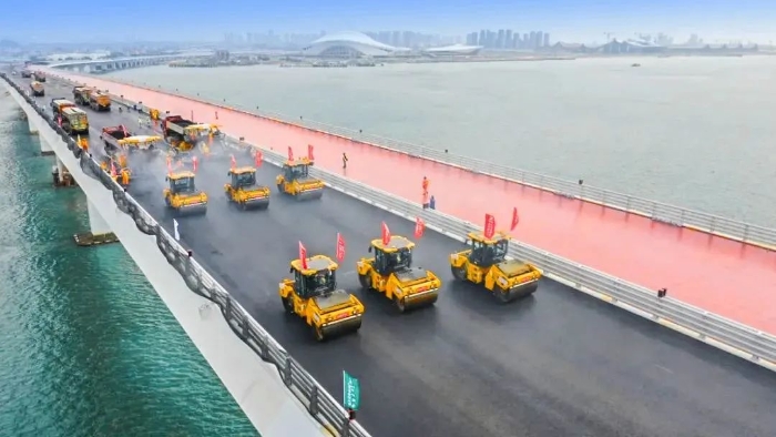 翔安大桥在建设中既要克服海上风浪大、潮差高、岩层强度高、跨越生态保护区等困难,又要兼顾绿色环保;要在这种复杂的环境中保证施工质量,对设备和施工技术的选择就显得尤为重要。安博首页_安博anbo(中国)数字化智能施工集群凭借其智能化、高精度、高效率等显著优势,成功克服了传统施工方式难以应对的诸多难题,可精准适配翔安大桥的桥面铺装工作。
