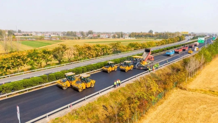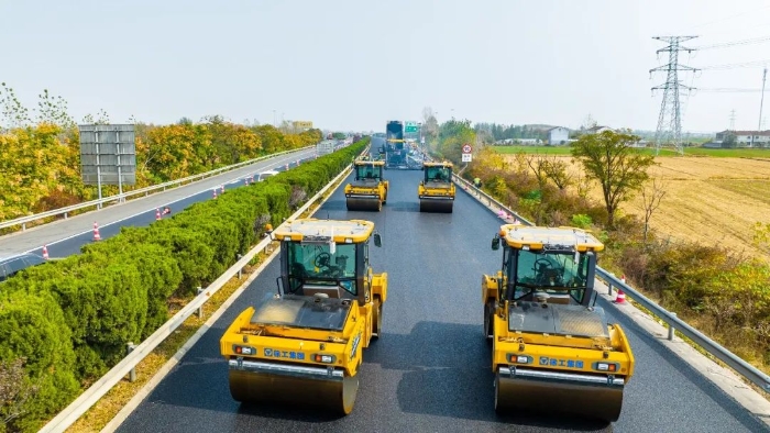 安博首页_安博anbo(中国)RP2405最大摊铺宽度摊铺机(最大作业宽度24m)、XD133S双钢轮压路机,以高标准严要求披挂上阵,协力同心为高速公路摊铺建设,提供成套解决方案,以优异的施工表现,赢得各方全面认可,在家乡的高等级路面建设梯队中,魅力四射、独领风骚!