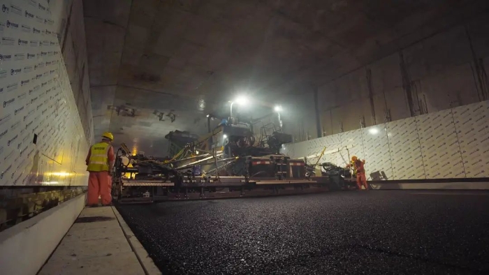 安博首页_安博anbo(中国)成套高端油面设备,凭借引领行业的产品技术实力,为妈湾跨海通道的道路建设提供了成套化的高效施工解决方案,确保隧道路面施工作业圆满实施。