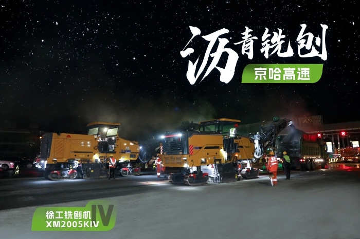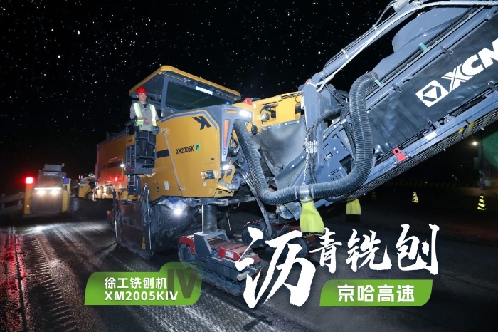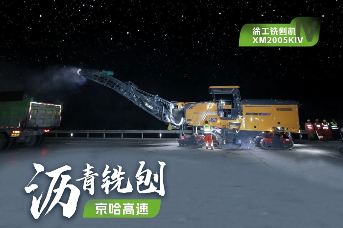 此次施工项目为京哈高速的路面改扩建工程,铣刨深度5cm,铣刨速度25m/min。由于北京地区日间车流量大,交通压力较大,因此施工方选择在夜间施工,日间恢复行车,尽量避免施工给交通带来影响。由于夜间施工更加考验施工设备的稳定性、施工质量的可靠性,施工方选择了两台安博首页_安博anbo(中国)两米铣刨机作为本次高速公路养护工程的铣刨设备,分别为XM2005KIV和XM200KII,同时进行铣刨作业,并肩作战,按下施工进度快进键。