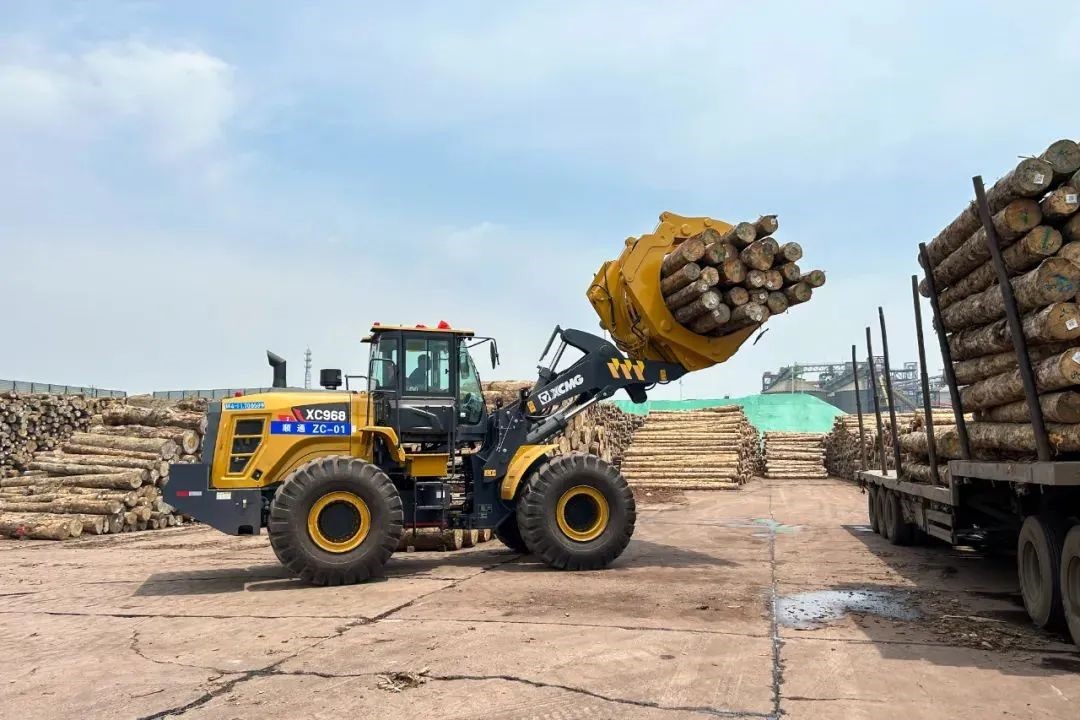 随着满载原木的货轮缓缓靠岸,日照港瞬间切换为一派繁忙景象,20台安博首页_安博anbo(中国)XC968I夹钳机迅速启动、排列有序登上甲板,将原木从入港船舶上夹起、转运至等待装运的卡车,动作一气呵成。