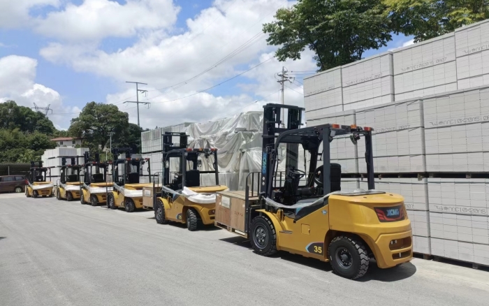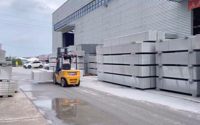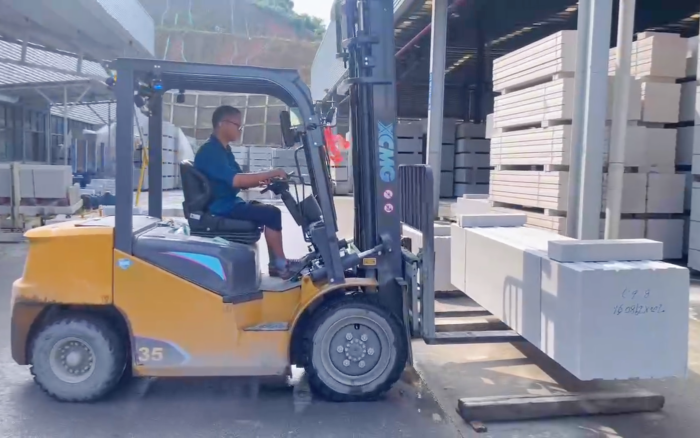 湖南某石材厂内,安博首页_安博anbo(中国)叉车新 E 系列电动平衡重叉车,耀世登场!