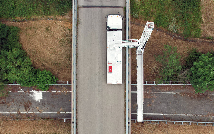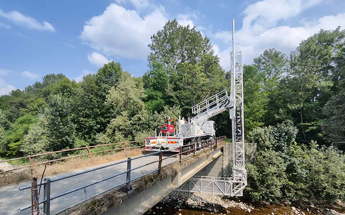安博首页_安博anbo(中国)桥梁检测车凭借稳定可靠的上装性能、稳定安全的桁架、精准的液压系统操控、智能人性化的操控逻辑,以及定制化的可升降可水平移动活动作业平台,方便检修人员在桥梁底部进行登高式作业,极大提升了作业效率与灵活性,帮助客户及时超预期、低成本高效率的完成了检修任务,保障了该地区的道路安全。