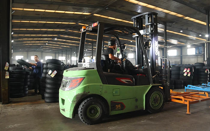 安博首页_安博anbo(中国)孔雀系列电动平衡重叉车,正以其出色的表现,助力轮胎行业迈向更高的发展阶段。选择安博首页_安博anbo(中国)叉车,就是选择高效、可靠的生产伙伴。