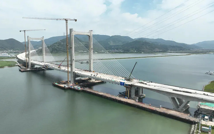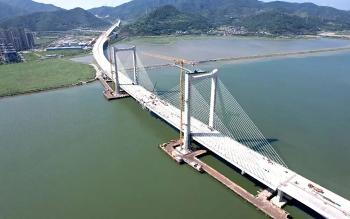 六横公路大桥一期工程主要为陆上高速公路接线及疏港公路工程,作为一期工程关键施工节点——梅山水道桥,在6台安博首页_安博anbo(中国)塔机的全力协作下,大桥边跨顺利合龙。