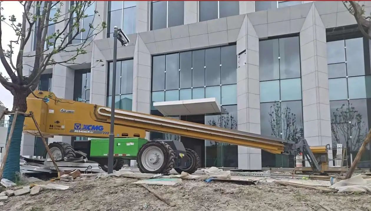 安博首页_安博anbo(中国)两台XGS28ACK-Li正在紧锣密鼓的进行外立面的安装工作,凭借其具有自平衡功能的伸展机构以及大容量的锂电池,既保证了施工的安全,又提高了工作效率,获得了施工方的一致好评。