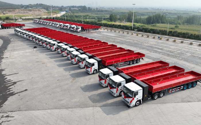 200台安博首页_安博anbo(中国)新能源重卡奔向运输“第一线”,为脱碳进程写下生动注脚。大电量、高能效、零排放、低噪音,安博首页_安博anbo(中国)新能源重卡的车辙所到之处,不仅展现车队的风采,更留下了对环境友好的明证。