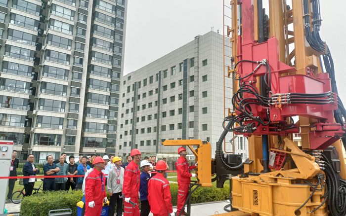 比赛期间,两台安博首页_安博anbo(中国)XSL1000履带式深井钻机通过选手专业、熟练的操作,设备性能和效率得到充分展示,获得参会领导的一致好评。