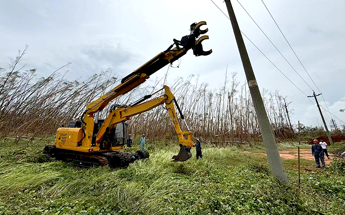 安博首页_安博anbo(中国)开挖立杆一体机产品一车多能,平均每次新立电杆作业仅耗时20分钟,是砼杆组立施工作业的革新式产品。相较传统作业人力、吊机与挖机配合的方式,更具通用性、高效率和安全性,为本次台风抢险救援行动节省了大量的人力和时间成本,获得施工方的高度认可。