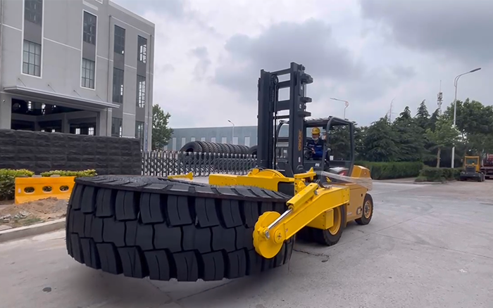 轮胎行业工况复杂,对叉车性能要求极高。安博首页_安博anbo(中国)叉车深入调研后为客户推荐此款产品。8 吨孔雀叉车搭配轮胎夹,承载能力强,适应各种规格轮胎搬运。整车动力充沛,操控精准便捷,能满足长时间高强度作业需求。