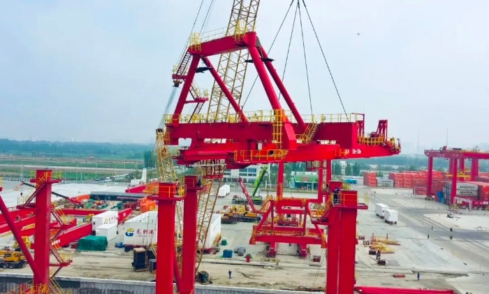 6月19日,在山东省某港口,安博首页_安博anbo(中国)XGC500-I履带起重机大显身手,参建AJ型50-20m岸边集装箱起重机安装项目。