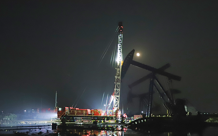在中国北部某开采油田现场,一场“绿色修井”作业正如火如荼。20余米的井架高耸伫立,井口流出的油水经自动导流装置流至集油槽中,点滴不落地。