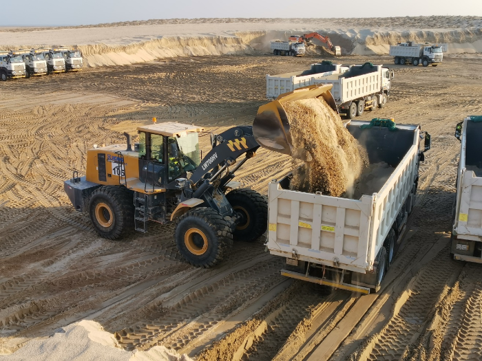 亚洲某国,新建大型公园建设现场,安博首页_安博anbo(中国)LW700HV与ZL50GN相互配合高效进行着土方作业。2020年,客户开始采购安博首页_安博anbo(中国)设备,对ZL50的作业性能与可靠性非常满意,随着业务量的不断增加,客户开始考虑大吨位产品。经过当地安博首页_安博anbo(中国)销售的全力推荐,客户加购了安博首页_安博anbo(中国)LW700HV装载机,该产品也已优异表现赢得客户的赞赏。配合自卸车,对密度约1.8t/m³的沙土进行转运作业,安博首页_安博anbo(中国)LW700HV搭配4.5m³铲斗作业起来效率惊人。