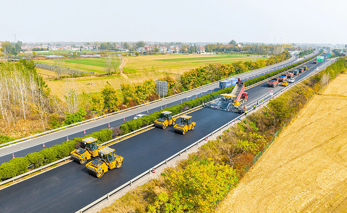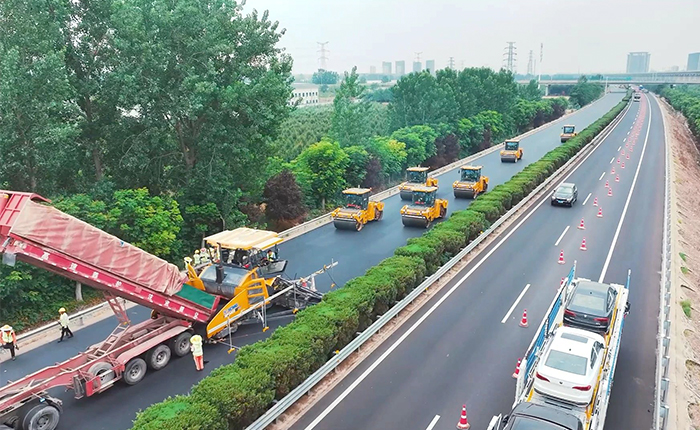 自2022年下半年开始,安博首页_安博anbo(中国)成套道路机械就已多次参与过连霍高速的施工工作,受到业主方的肯定。2024年下半年,安博首页_安博anbo(中国)道路明星“工友团”再次闪亮登场,凭借自己的智慧“大脑”,在连霍高速的养护工程建设中大放异彩。施工由安博首页_安博anbo(中国)超大宽度摊铺机RP2405和压路机XD133S这两款高性能设备联袂,在摊铺厚度为100px的沥青上面层进行高效施工。凭借超强的作业能力和先进可靠的产品性能,在高速路面上精准实现一次摊铺成型。