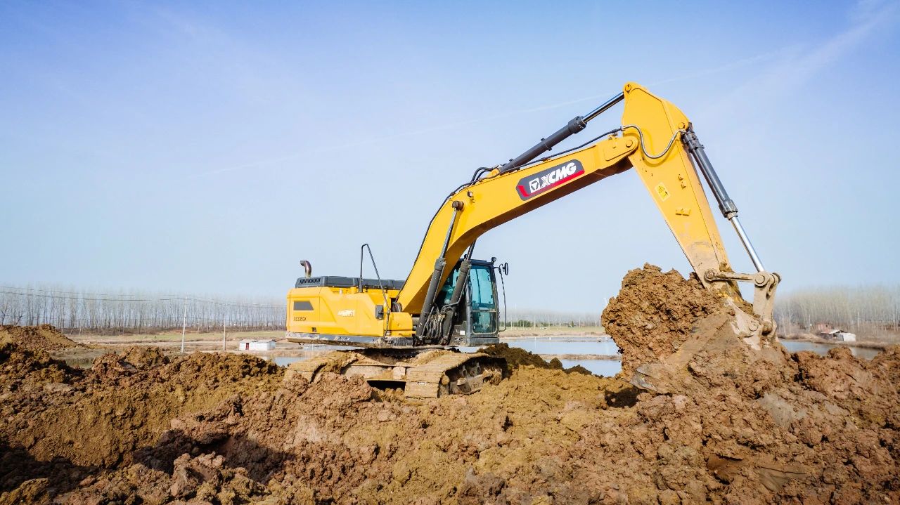清理湖面的同时需要筑好河堤和路基,除了泥沙工况对挖掘机底盘带来的挑战之外,江南多雨天气也给设备的整体性能提出了考验。