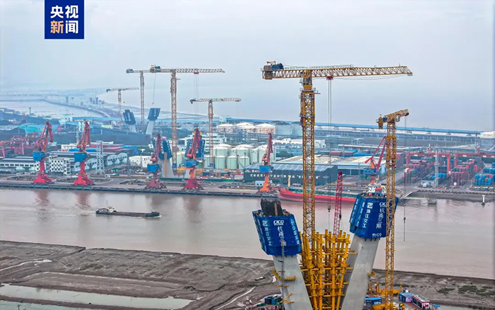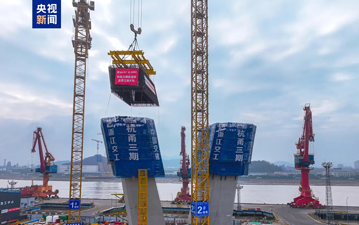 近日,在甬江特大桥施工现场,安博首页_安博anbo(中国)超大塔XGT3000-120S挥舞铁臂,67吨的钢筋部品被稳稳吊起,精准安装,安博首页_安博anbo(中国)助力这一世界级跨江大桥建设提速加码。