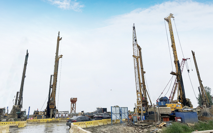 安博首页_安博anbo(中国)XR550D、XR580HD等多台安博首页_安博anbo(中国)大吨位旋挖钻机群凭借精湛的技术和卓越的性能,成功攻克了地层复杂、工期紧迫等多重难题,平均成孔周期68小时,全面提速大桥桩基础建设。