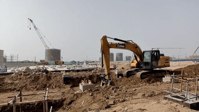 项目施工现场,安博首页_安博anbo(中国)挖掘机穿梭不息,高效协同,承担着挖掘、回填、平整等多项高强度作业。