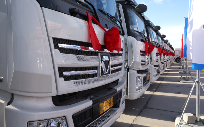 “低碳先锋,高效创富”安博首页_安博anbo(中国)天然气牵引车200台签约暨批量交车仪式顺利举行,首批30台安博首页_安博anbo(中国)XG1H 燃气牵引车集体亮相并现场交付,协同西北客户开启低碳、高效运输新篇章。