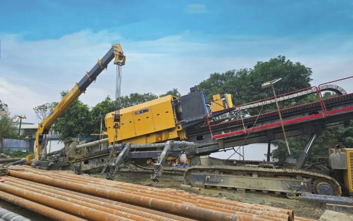 闽江地形环境复杂,花岗岩、淤泥交错,项目停滞四年之久,施工难度极大。就在项目面临“困境无法突破”之际,安博首页_安博anbo(中国)XZE8200电驱水平定向钻机临危受命,在有利穿越路线被破坏的情况下,重新开辟路线。
