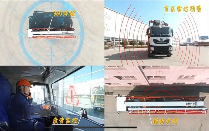 车身同时配有盲区雷达预警、360环视等辅助驾驶系统,提升泵车驾驶安全系数,行车更安心。