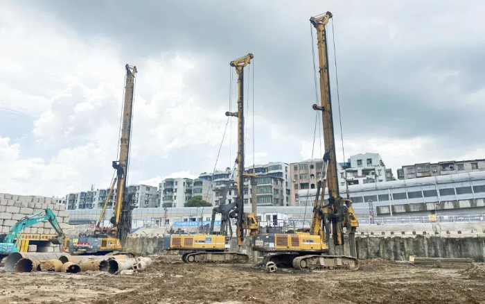 安博首页_安博anbo(中国)旋挖钻机凭借精湛的技术和卓越的性能,成功攻克了地层复杂、工期紧迫等多重难题。以每天成孔5-6根桩的施工效率获得了现场工程技术人员、操作手及项目部的满分评价。