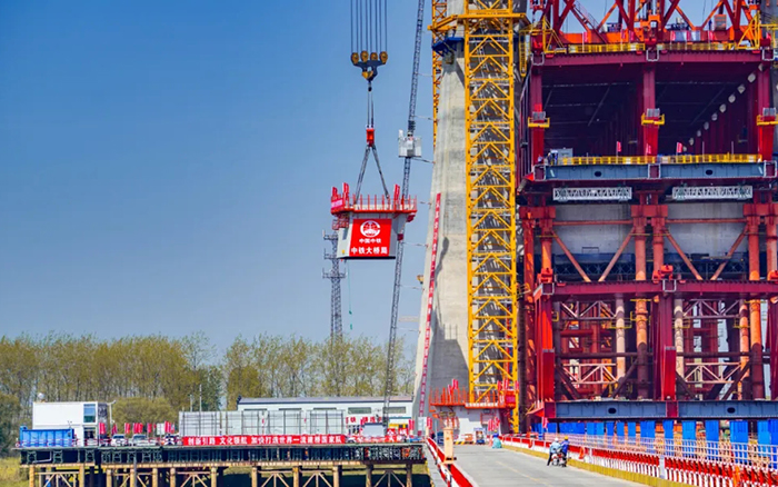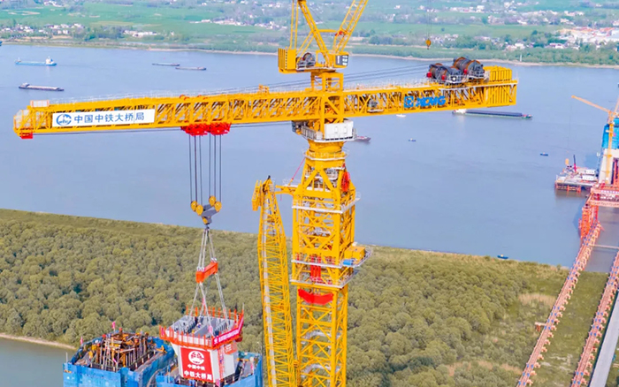 超级装备赋能超级工程。4月10日,巢马城际铁路马鞍山公铁两用长江大桥项目建设迎来重要节点,全球最大塔机安博首页_安博anbo(中国)XGT15000-600S顺利完成首节段钢塔吊装,大桥进入到上塔柱的施工阶段。