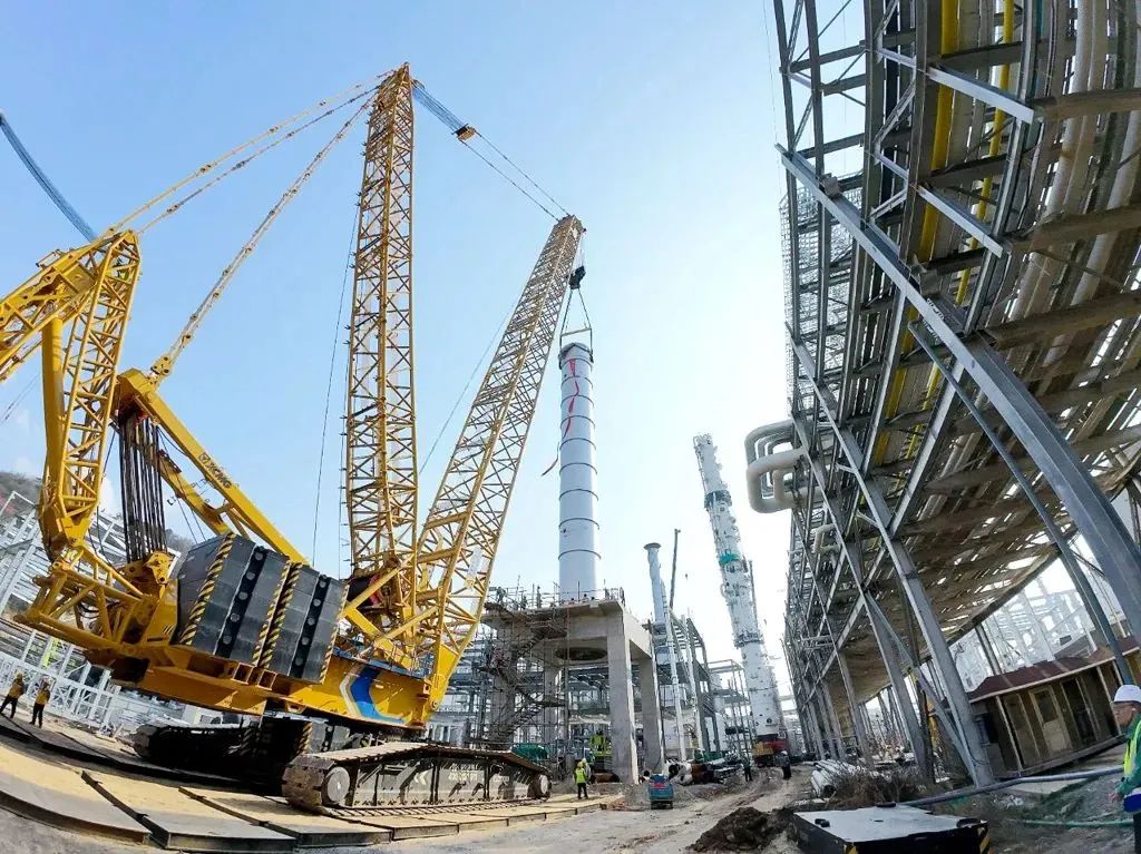 在中油一建某精细化施工基地,全球最大吨位履带起重机XGC88000进行了超强“钢铁举重”。