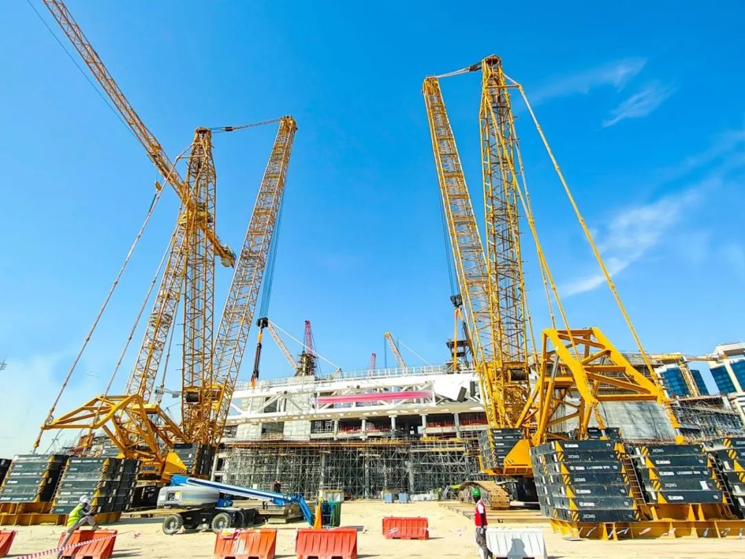 万里之外的中东沙漠,2034年世界杯主场馆建设现场,XGC15000A与XGC12000领衔组成"钢铁舰队"。