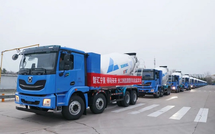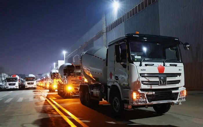 百余台定制版52/58/62米泵车、12方搅拌车,列队鸣笛,从徐州基地发往中东。产品采用耐高温液压系统与节油技术,适配中东极端环境,助建NEOM未来新城等超级工程。