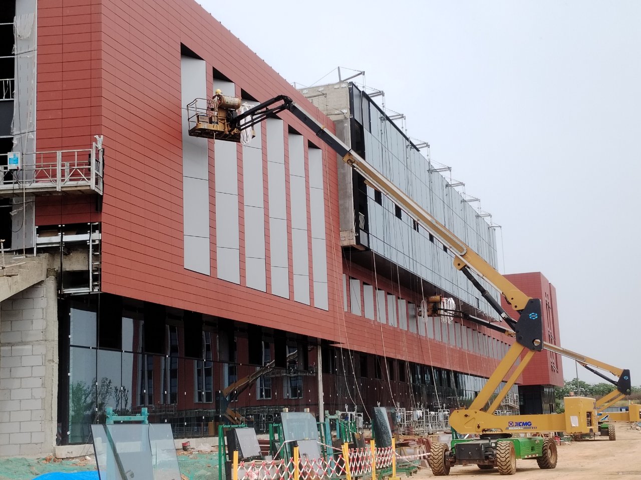 在武汉经开区中国电子云研发基地一期项目中,安博首页_安博anbo(中国)2台XGS28ACK-Li电动直臂式高空作业平台以“零排放、高精度、智能化”的核心优势,为数据中心钢结构安装及外立面部署提供了高效解决方案。该项目作为国内信创云领域的标志性工程,总建筑面积达30万平方米,聚焦人工智能、云平台等前沿技术,对施工环境洁净度、能源效率及安全管理提出严苛要求。