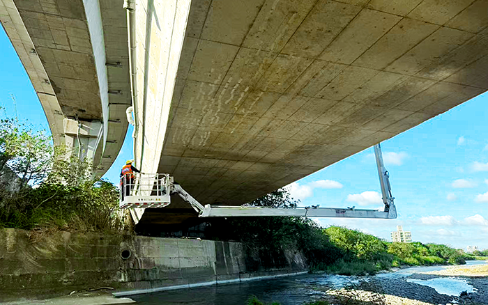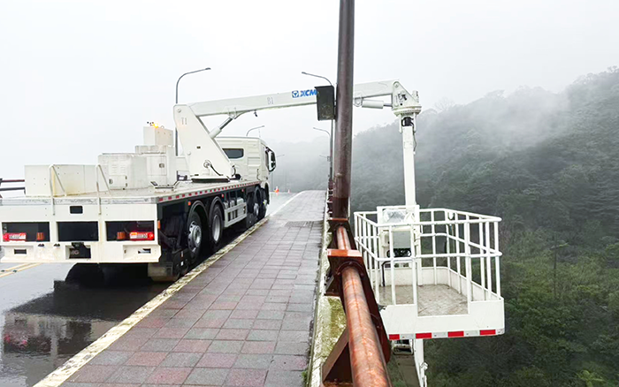 安博首页_安博anbo(中国) QJZ18 在全行业首创工作平台第三回转功能,该功能使作业平台灵活靠近检测部位。施工人员兴奋表示:“这功能太实用!以往遇到这类复杂桥型就头疼,如今检测轻松多了。” 同时,车辆作业占道距离小,施工时道路车辆正常通行,极大降低对交通的影响。
