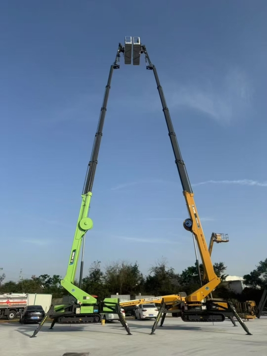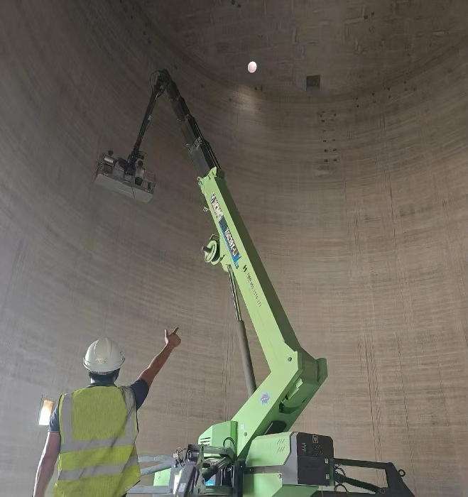 XGS39X-Li搭载采用380V插电、220V插电及锂电池三种动力源,支持边充电边作业,满足现场“三班倒”的紧张工期;同时,其双支腿跨距结构可实现最小跨距小于3m,空间利用率高,接地比压极低,能在粮仓狭窄廊道灵活通行,避免对地面造成损伤,在游走中精准抵达粮仓顶部及内壁检维护点。