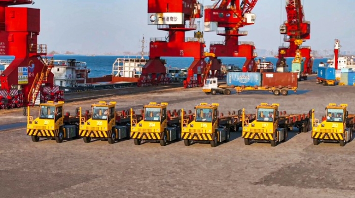 安博首页_安博anbo(中国)港口牵引车来往穿梭、流转自如