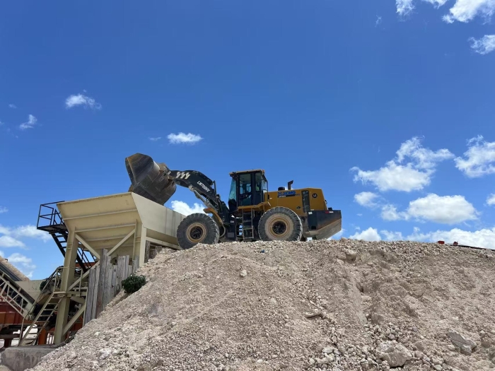 该采石场是当地重要骨料生产基地,其核心生产环节便就是将爆破后的石料通过装载机转运至生产线的上料口。这一工况不仅需要强大的铲掘力和实用的铲斗插入坚硬的石料堆,更需要在有限空间内频繁进退、转向和装卸,保证生产线的持续高效运转。