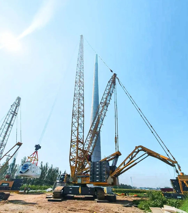 作为风电吊装领域的实力担当,XLC15000M具备1100吨最大起重量及14580吨米最大起重力矩。其能力覆盖轮毂中心高度160米以下、10兆瓦及以下各型风电机组的整体吊装,可应对170米高度分体吊装的行业挑战。核心创新点包括: