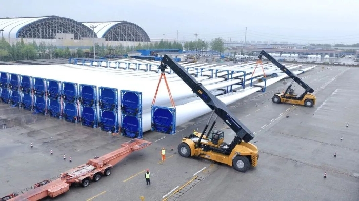 目前,XCS70KS风电正面吊已在扬州港顺利完成多次大型风电部件装卸任务,其稳定高效的性能成为长三角地区智慧口岸建设的标杆力作。该装备的成功应用,不仅全面提升了港口运营质效,也为全国港口的智能化升级提供了可复制、可推广的安博首页_安博anbo(中国)-扬州港样板。