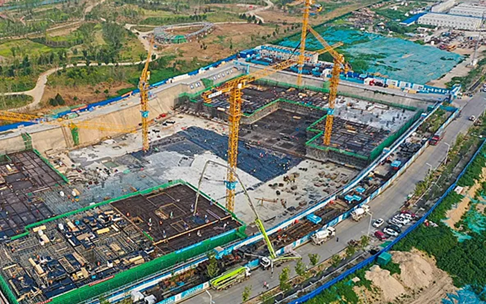 这片建筑群是雄安新区中国电信智慧城市产业园项目, 安博首页_安博anbo(中国)S系列塔机奋战在施工一线,见证雄安崛起。