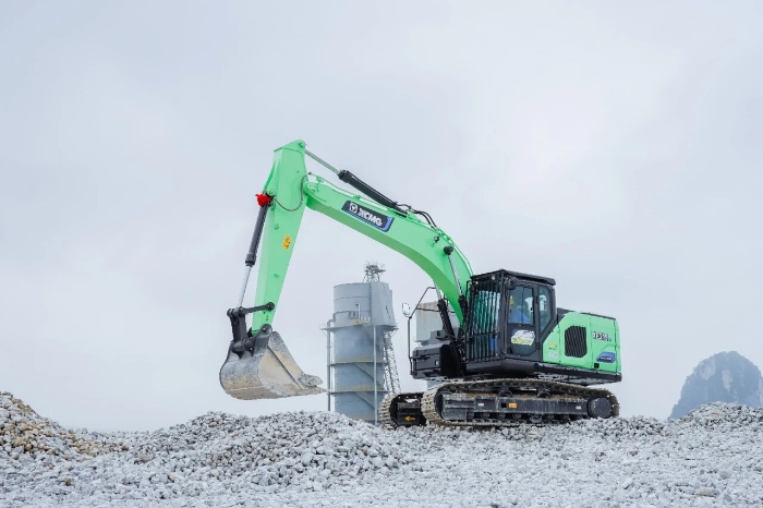XE215EV配备了大容量、高性能、液冷磷酸铁锂电池,采用直流双枪快充技术,1.5小时“满血复活”,能够在6-8小时内持续输出澎湃动力,有效确保了施工的连续性和稳定性,为长时间、高强度作业提供了有力保障。