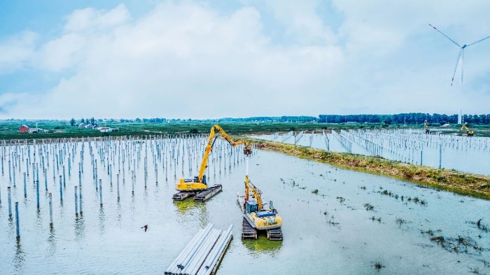在渔业较为发达的滨海港镇,“渔光互补”光伏发电项目建设正如火如荼,项目现场,安博首页_安博anbo(中国)水上打桩机的身影随处可见。