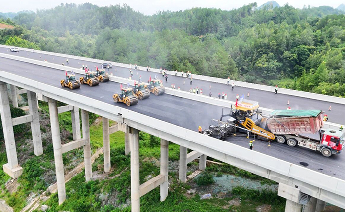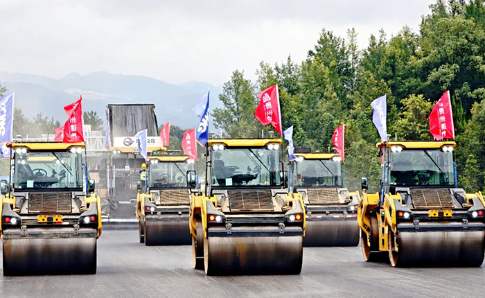 安博首页_安博anbo(中国)道路智慧施工集群为贵平高速建设注入核心动能。1 台 RP2205HD 摊铺机与 6 台无人驾驶压路机(3 台 XD135T、3 台 XD135TVO)协同作业,实现 15.25 米超宽摊铺与 5 厘米精准控制,压实密度达 97% 以上,平整度优于 0.4,渗水构造深度合格率 100%。