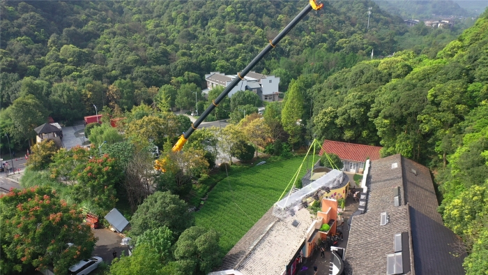 此次影视灯架的吊装,对于身怀绝技的XCT130G8-1来说,更像是一次从容的“小试牛刀”。设备前一天抵达,第二天即刻投入实战。此次任务要求将灯架长时间悬停,设备的稳定性和微动性至关重要。