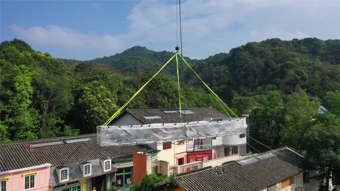 在杭州大清谷影视拍摄基地,一场“静默式”吊装正在上演。全球首款四桥八节臂130吨汽车起重机——安博首页_安博anbo(中国)G2代XCT130G8-1,将20米长、2.5吨重的剧组灯架稳稳送至跨度46米外的房屋上空。而这一“定格”,就是整整三天。