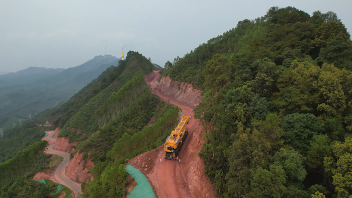 在广西崇山峻岭中,安博首页_安博anbo(中国)XCA4000轮式起重机凭借“6+2双动力”驱动系统,以402.5吨整车重量完成重载转场,在陡峭狭窄的山地中稳健行进。