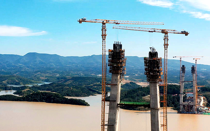 苍翠群山环抱,一库江水清澈。在被誉为“亚洲天池”的丹江口水库,两台XGT7532-20S塔机耸立岸边,助力着又一个世界级大桥的建设!