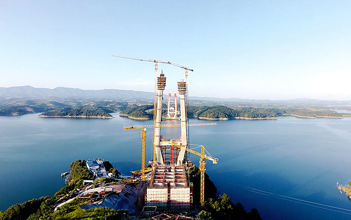 大桥全长1076米,主跨760米,建成后将成为世界上跨径最大的地锚式混合梁斜拉桥,同时也将创造4个“世界之最”。