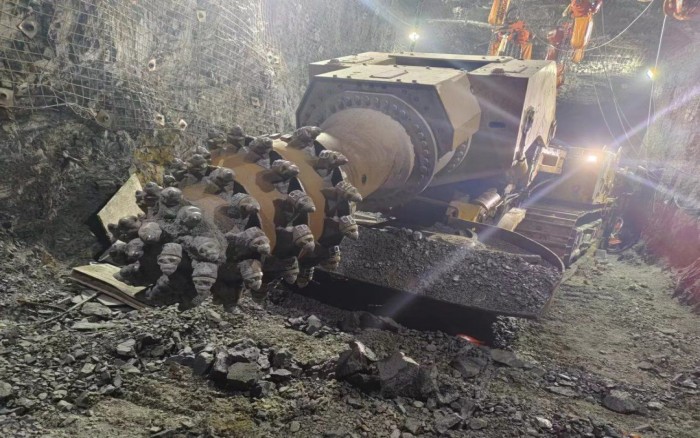 该矿施工断面5m*4.5m,岩层硬度在60MPa左右,客户所选购的安博首页_安博anbo(中国)XTR7/360掘进机最大截割高度7.2m,可实现中等断面隧道一次开挖成型,切割头配合硬岩截齿,掘进时可以向岩壁施加每平方厘米1.5吨的力量,在机动灵活的基础上兼具掘进硬岩的优势。